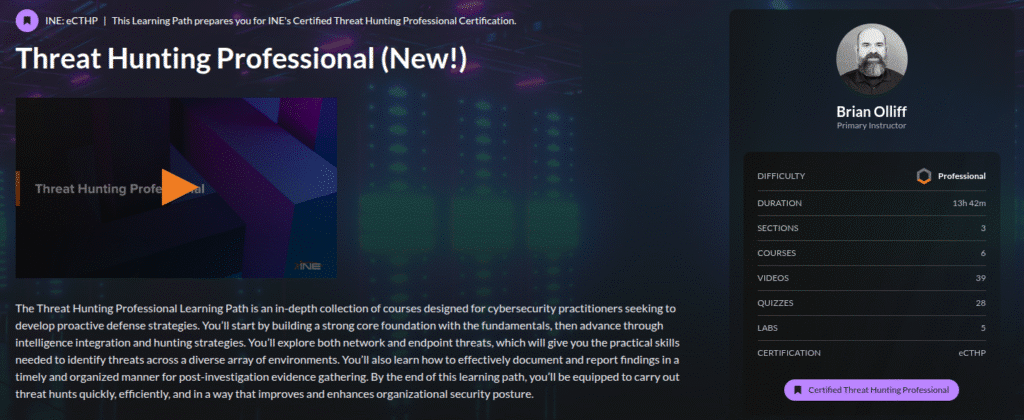 The Threat Hunting Professional Learning Path is an in-depth collection of courses designed for cybersecurity practitioners seeking to develop proactive defense strategies. You’ll start by building a strong core foundation with the fundamentals, then advance through intelligence integration and hunting strategies. You’ll explore both network and endpoint threats, which will give you the practical skills needed to identify threats across a diverse array of environments. You’ll also learn how to effectively document and report findings in a timely and organized manner for post-investigation evidence gathering. By the end of this learning path, you’ll be equipped to carry out threat hunts quickly, efficiently, and in a way that improves and enhances organizational security posture.