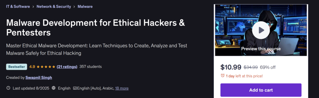 Malware Development for Ethical Hackers & Pentesters is designed for cybersecurity professionals aiming to deepen their understanding of malware creation and analysis within ethical boundaries. It provides hands-on experience in developing and dissecting malware to enhance penetration testing and red teaming skills.